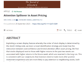 近日,我院陈鑫助理教授在金融学领域的国际顶级期刊《Journal of Finance》上发表论文“Attention Spillover in Asset
